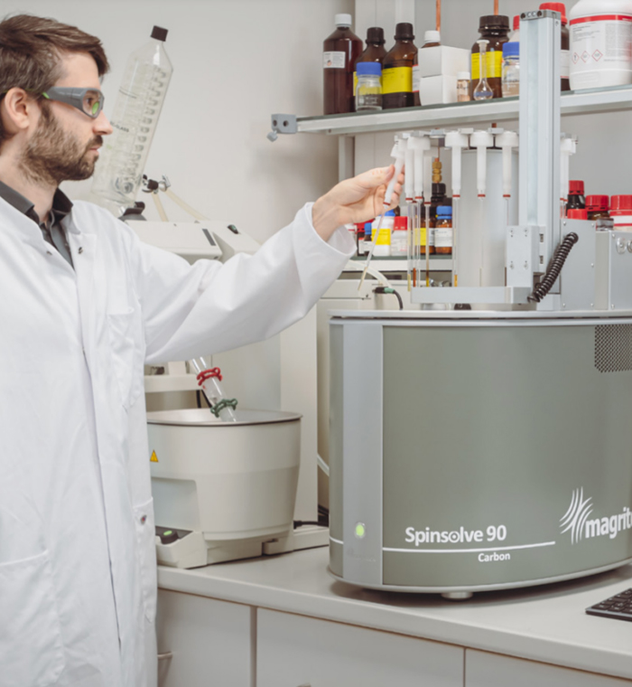 Las secuencias anidadas avanzadas, donde se adquieren múltiples experimentos con un solo retraso de relajación, se programan en nuestro espectrómetro totalmente digital. Todos los modelos de Spinsolve vienen con gradientes de campo de pulso a lo largo de x, yyz para una selección de señal eficiente. Además, ambos canales de RF pueden pulsarse simultáneamente con formas de onda definidas por el usuario.